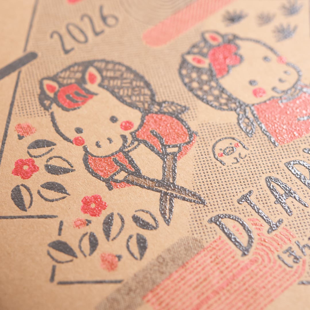 印刷は版画のような、懐かしさを感じるアナログな仕上がりです。