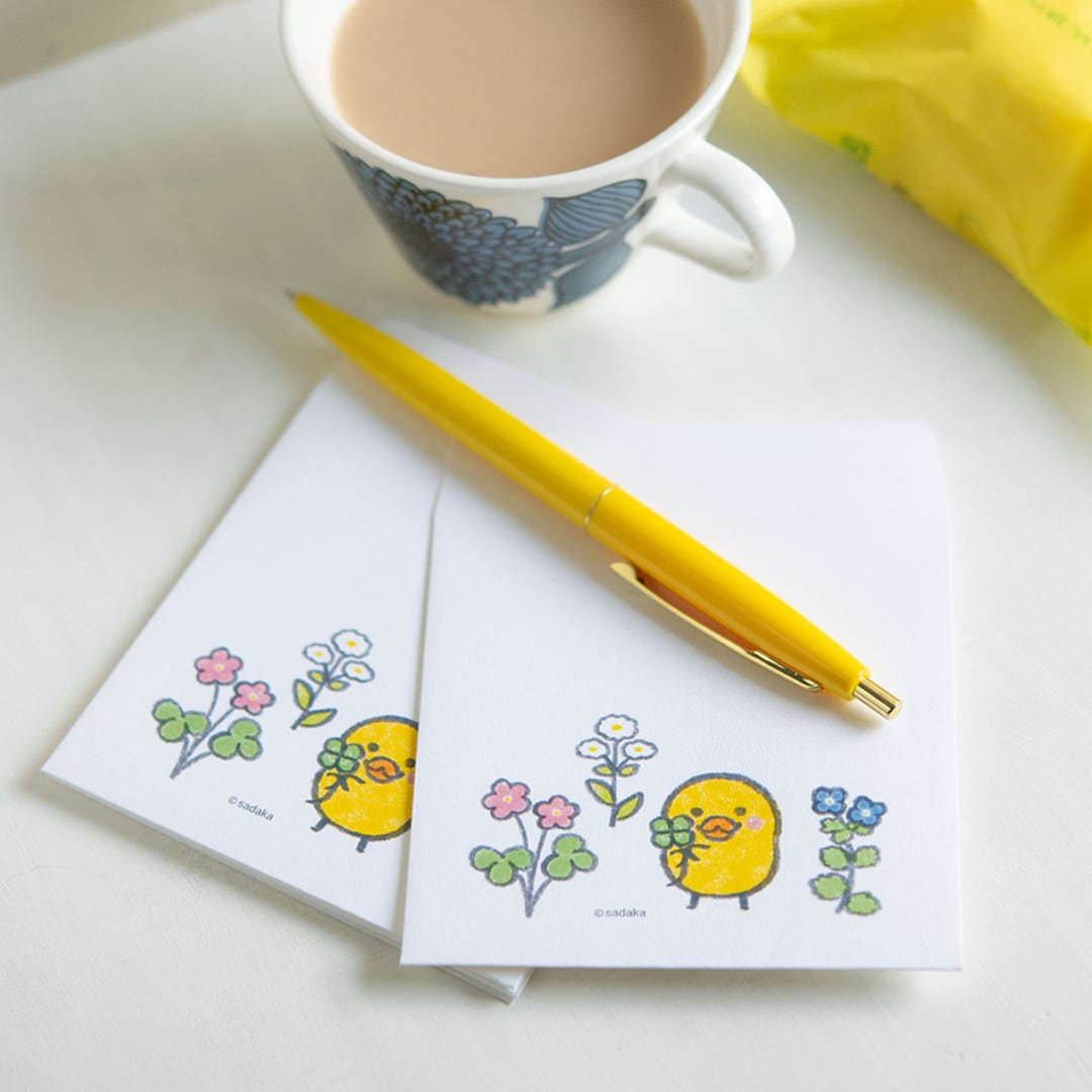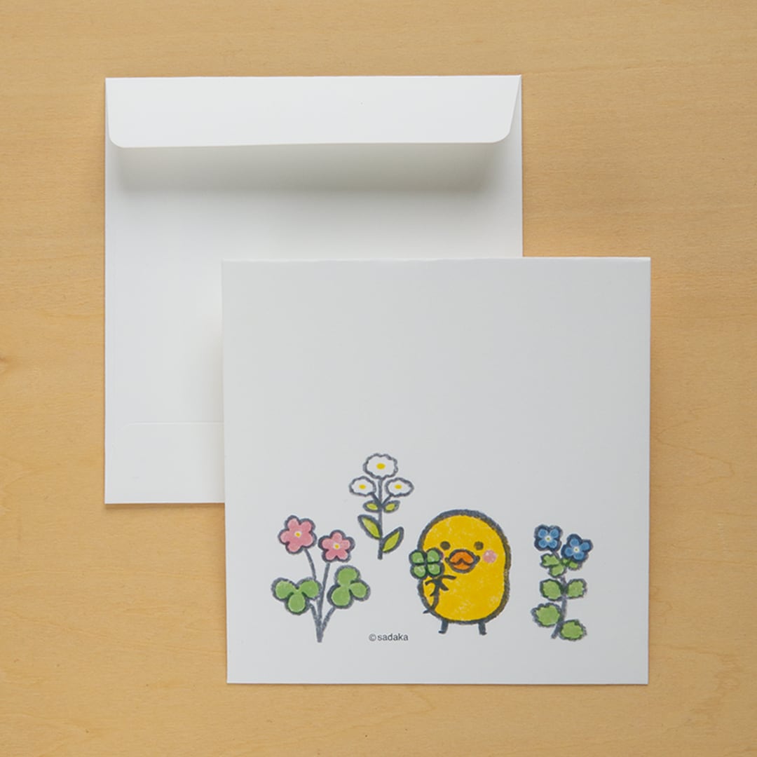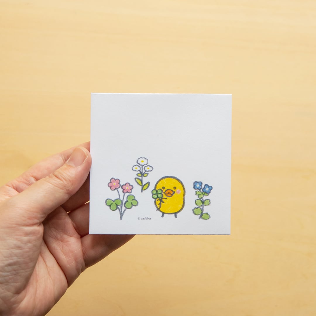 風合いのある紙に、あひるのアピルと野の花をプリントしました。