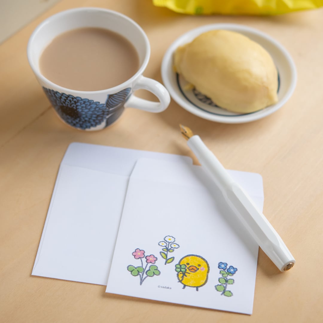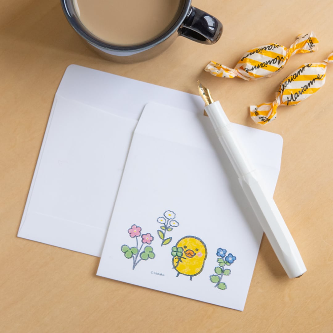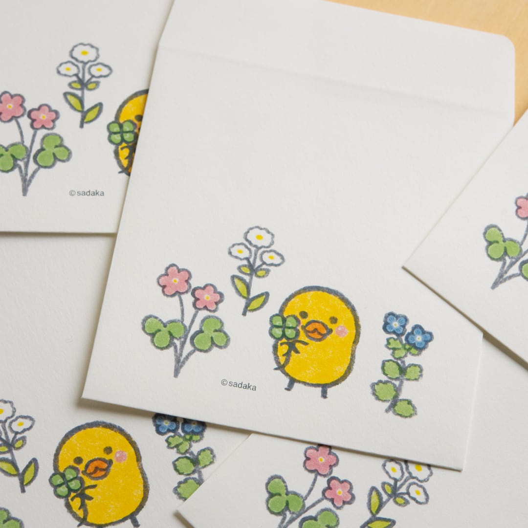風合いのある紙に、あひるのアピルと野の花をプリントしました。